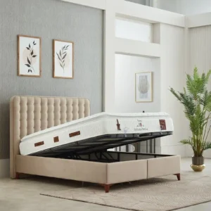Pat tapitat dublu de lux cu somiera si spatiu de depozitare Gesica
