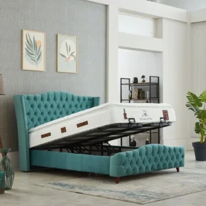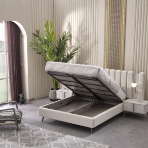 Pat tapițat matrimonial cu ladă depozitare de lux, Arya