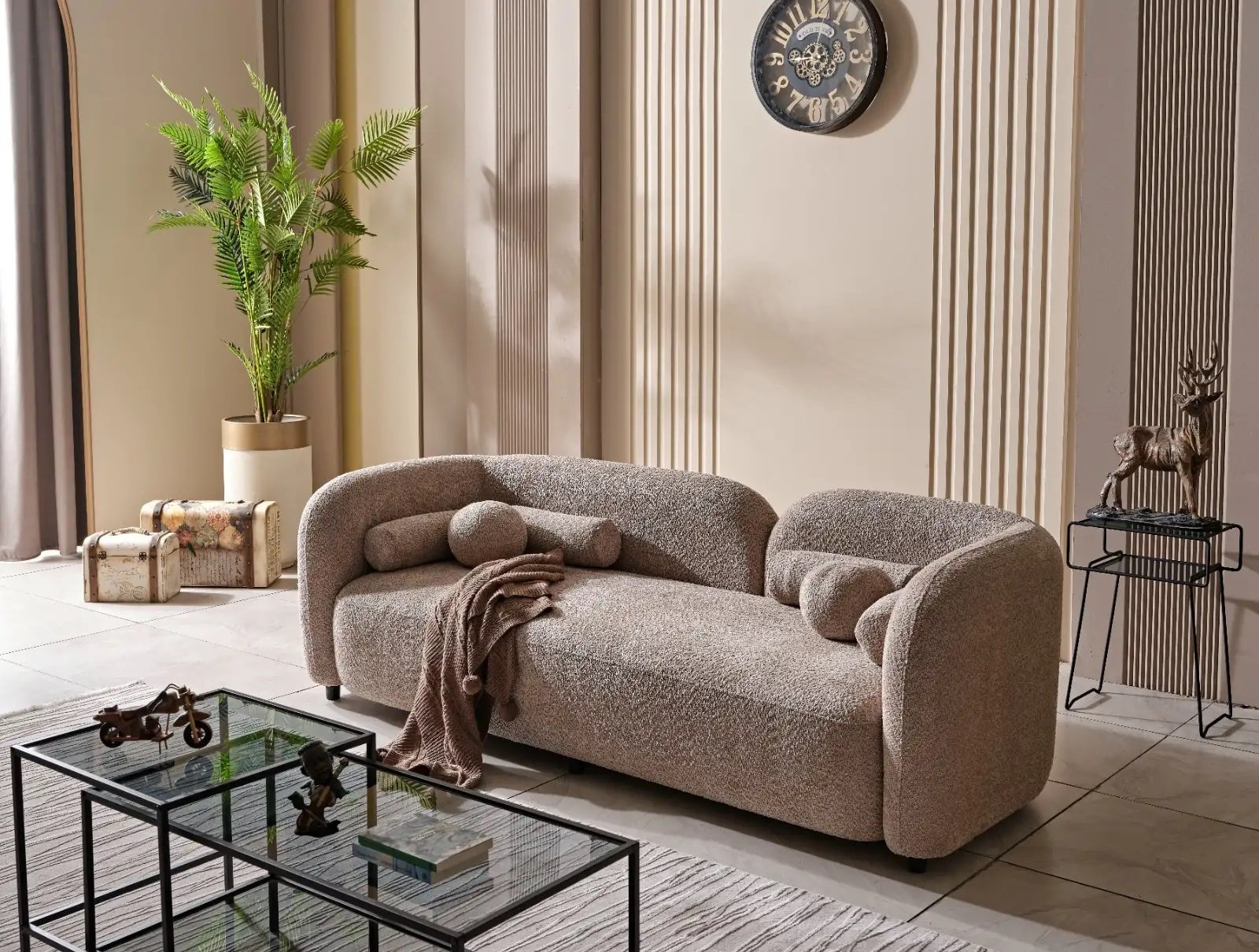 Canapeaua de 3 locuri Spring este piesa centrală a oricărui living, combinând simplitatea, eleganța și un confort greu de egalat. Cu designul său rotunjit și liniile fluide, această canapea devine rapid inima spațiului tău, fiind perfectă atât pentru momentele de relaxare în liniște, cât și pentru întâlnirile cu prietenii sau familia.
