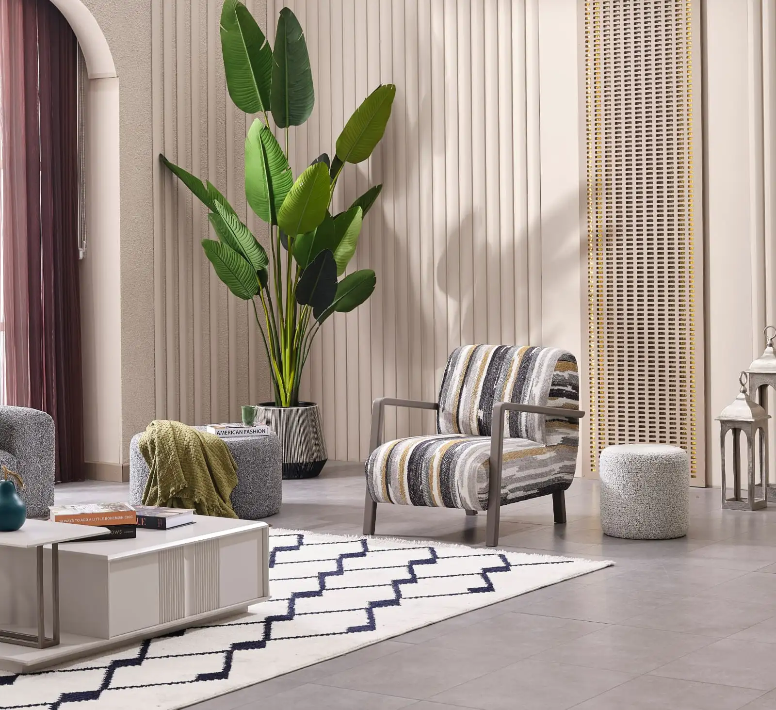 Nu uita sa pui si doua fotolii fixe tip Berger, care sa armonizeze sufrageria si acum ai un cadru perfect.