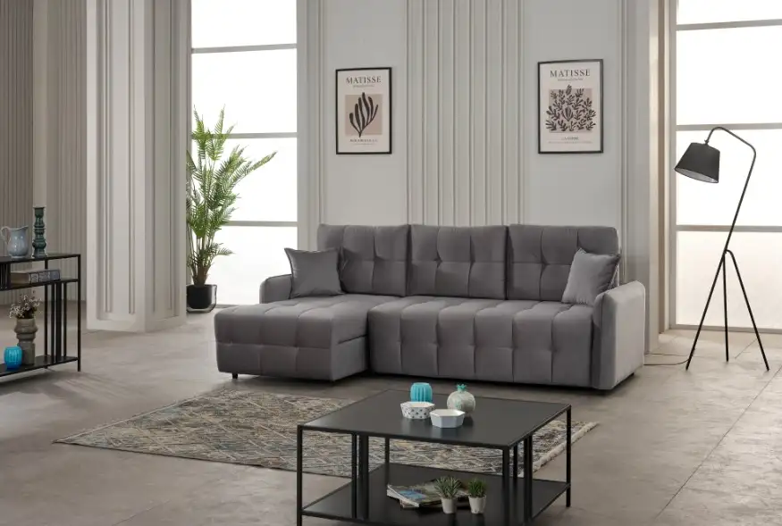 Coltarul Eva se incadreaza cu usurinta in majoritatea locuintelor indiferent de stilul acestora. Puteti alege din mai multe culori pentru stofa. Este tapitat cu stofa de calitate pe o gama variata de culori.