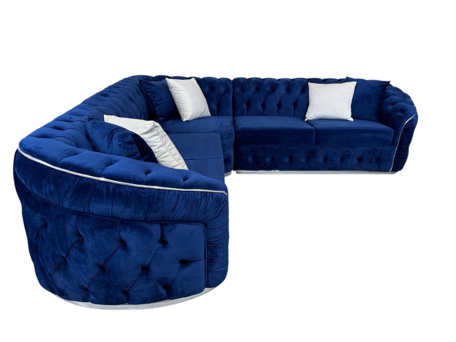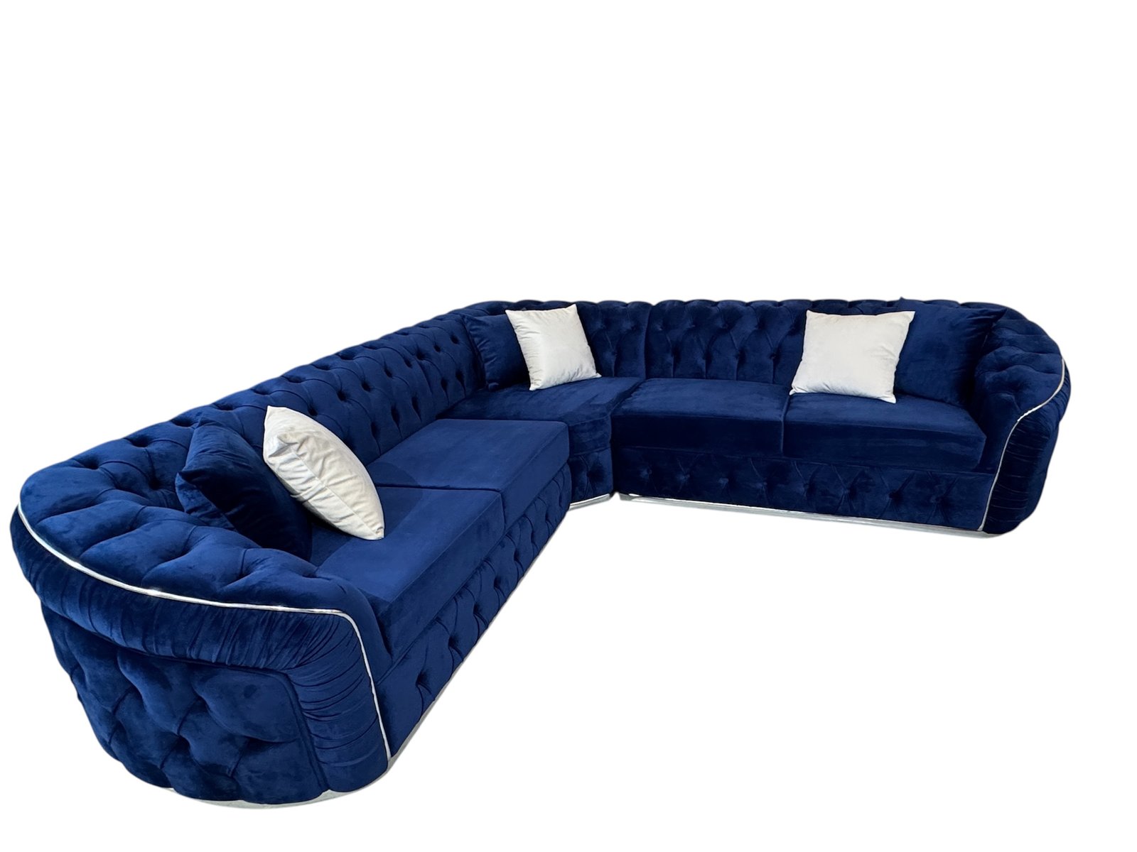 Colțarul LUGANO este o piesă statement, creată pentru interioare elegante și spații generoase, unde designul sofisticat și confortul superior sunt esențiale. Formele sale fluide, spătarul și lateralele capitonate cu detalii tip chesterfield, precum și accentele decorative subtile oferă un aspect luxos și rafinat.