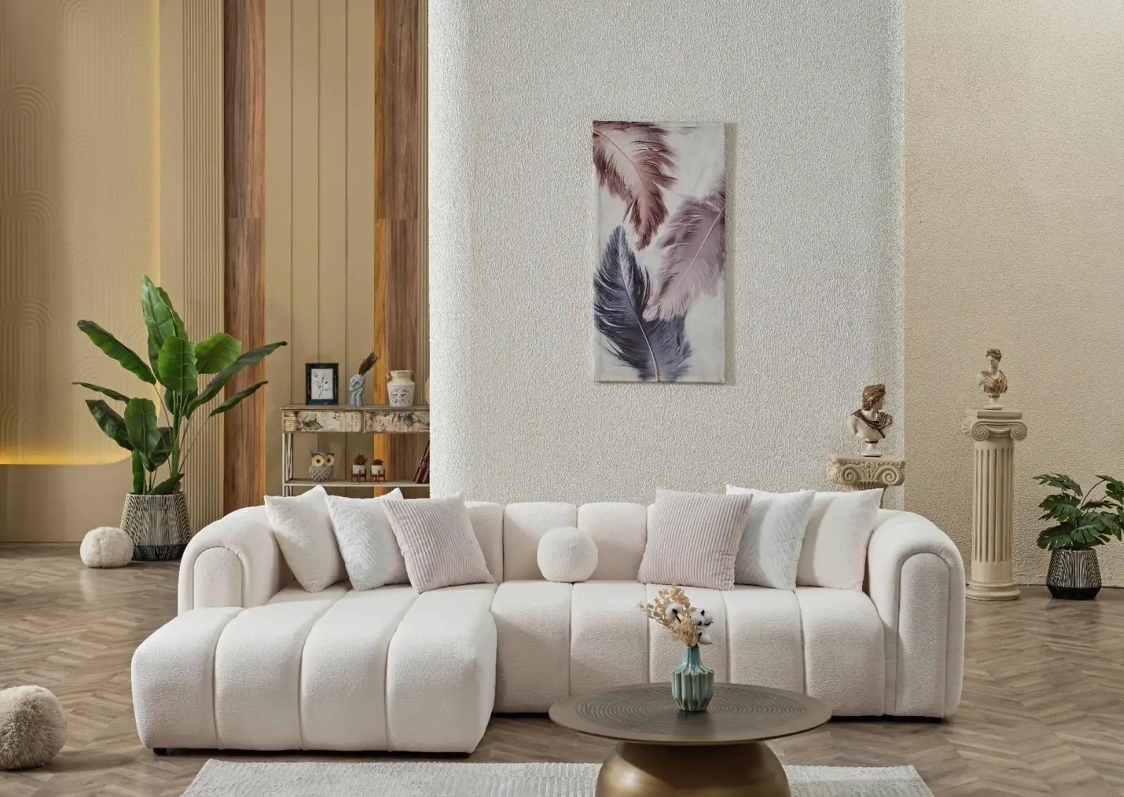 Coltarul modular Florida este cea mai bună alegere pentru cei care caută atât eleganța cât și confortul datorita sistemului pe arcuri ondulate(wave) combinate cu mai multe straturi din spuma poliuretanica,cadrul din lemn de fag,stofa calitate Premium Boucle.