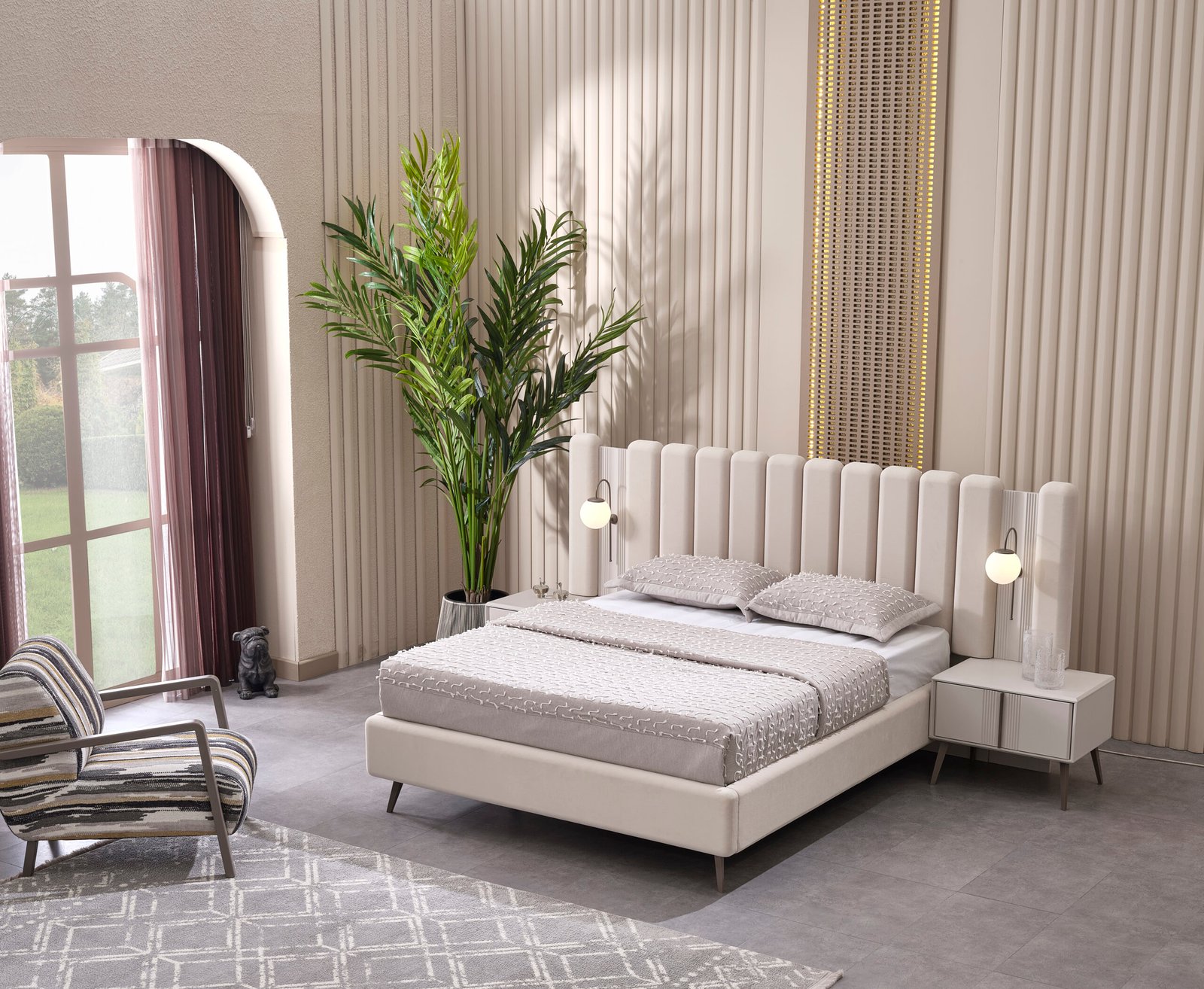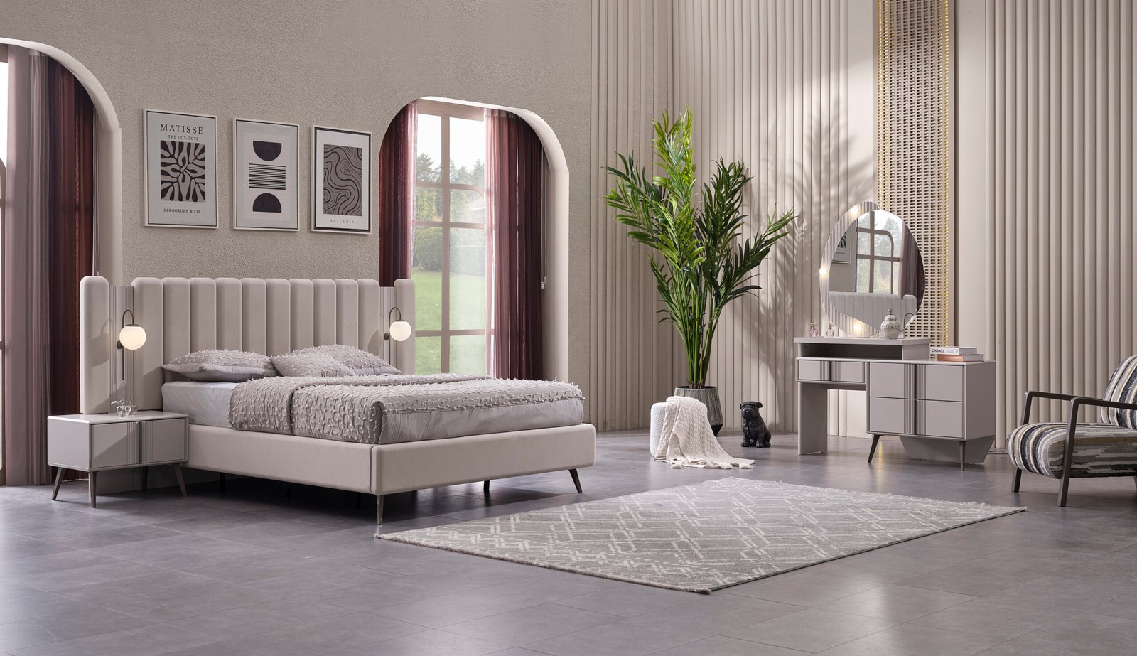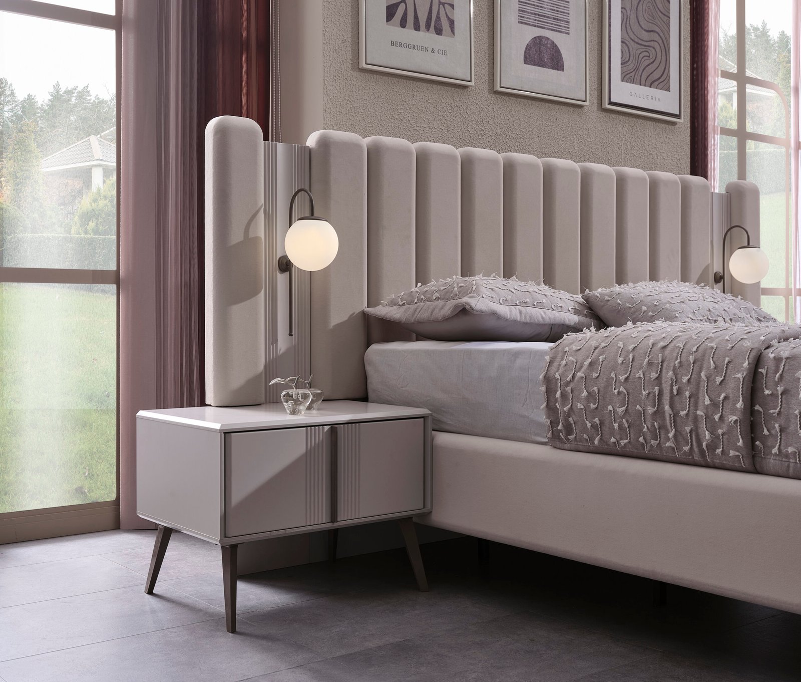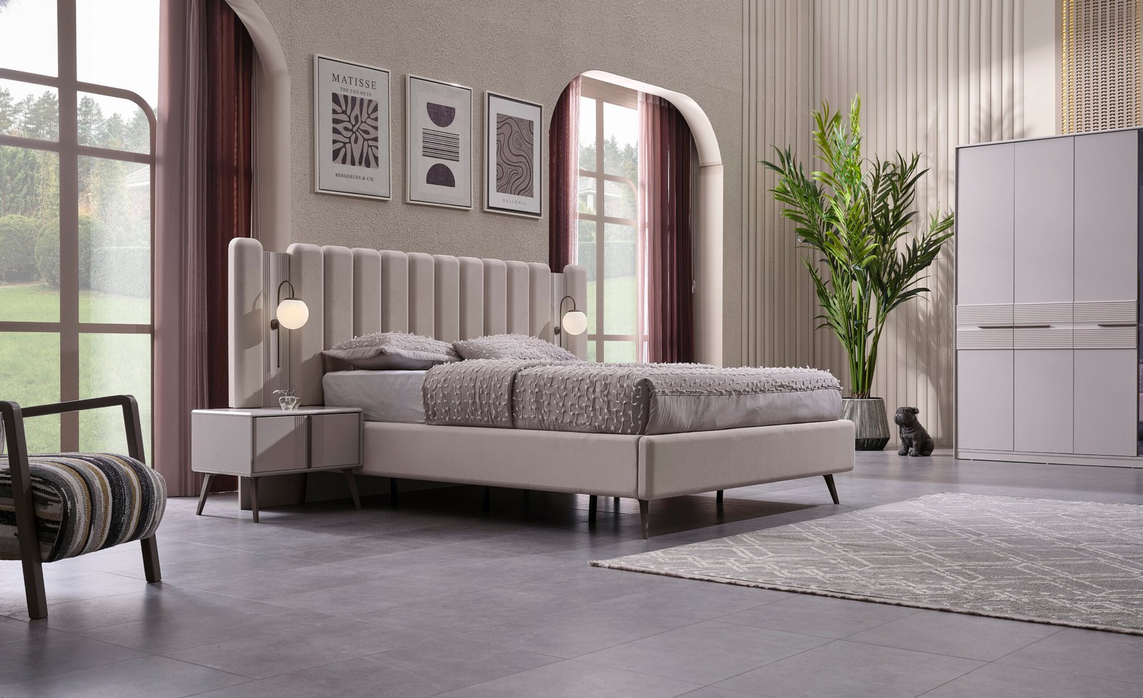 Patul de lux,Cenova este cu siguranta piesa centrala datorita tapiteriei elegante de un crem deschis, imbraca spuma densa de pe spatar sau tablia patului, care sustine pozitia spatelui intr-o pozitie comoda.