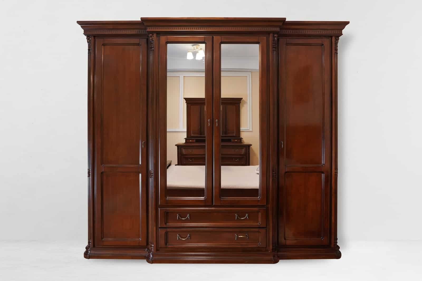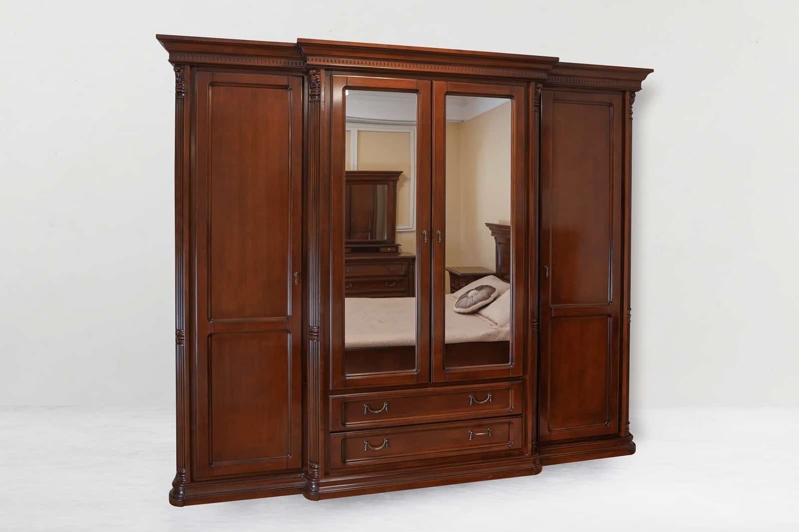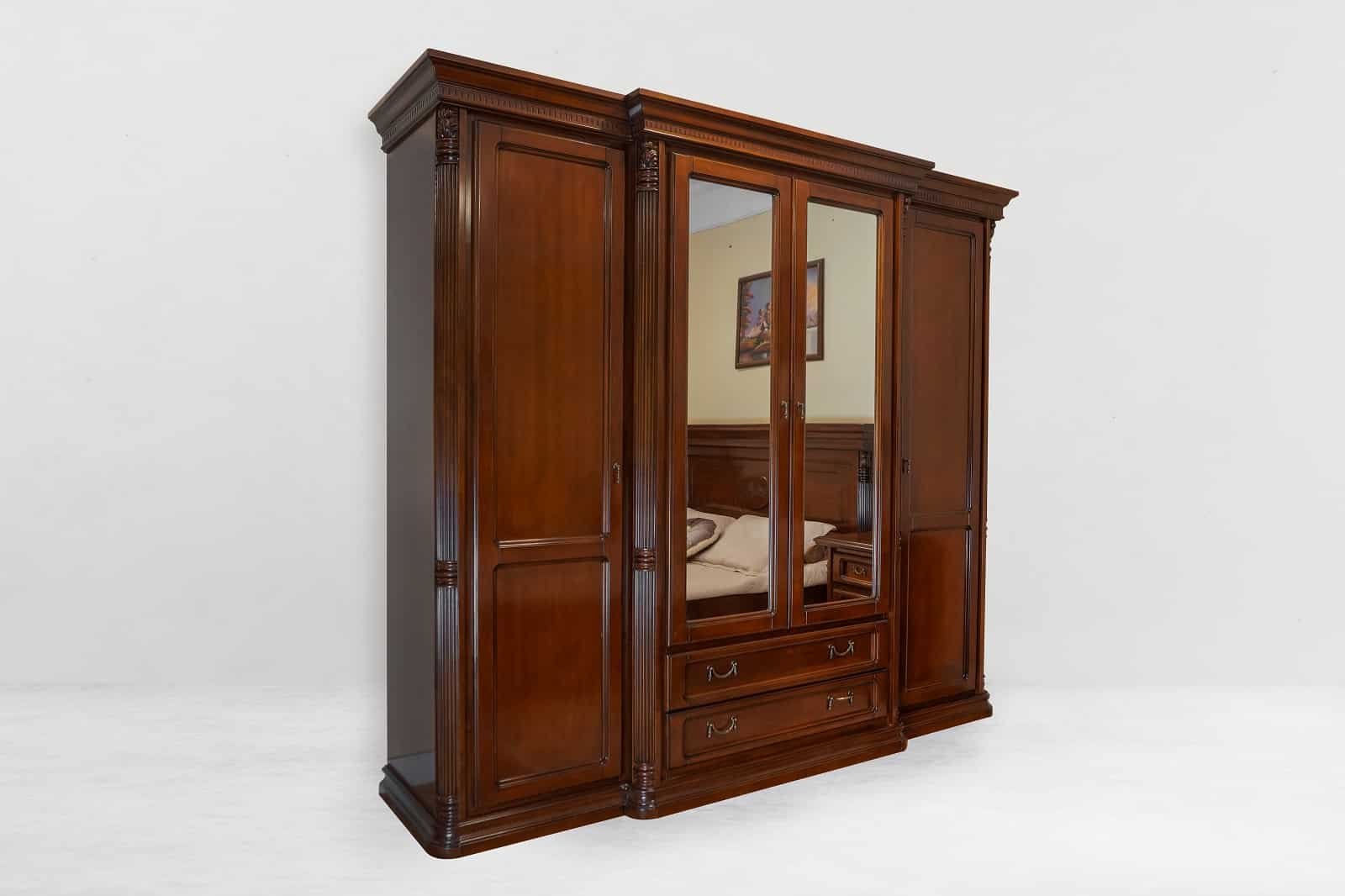 Pretul afisat este pentru configuratia : Dulap 4 Usi + pat 160×200 + 2 noptiere + comoda + oglinda