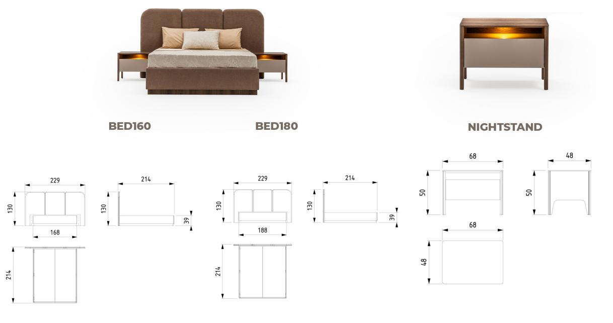 - Două Noptiere Elegante: Completează-vă designul de dormitor cu două noptiere elegante, care nu doar îmbogățesc aspectul estetic al spațiului, ci și oferă o funcționalitate practică. Perfecte pentru a vă ține la îndemână cărți, ochelari sau alte obiecte personale esențiale pentru serile de relaxare în pat.