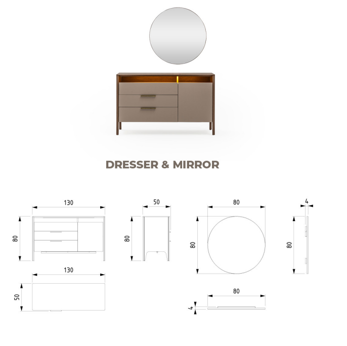 - Comodă cu Sertare: Echilibrând perfect funcționalitatea și estetica, comoda noastră cu sertare oferă spațiu generos pentru a vă păstra obiectele personale organizate și la îndemână. Designul său minimalist se integrează armonios în orice decor, oferind un plus de rafinament și stil.