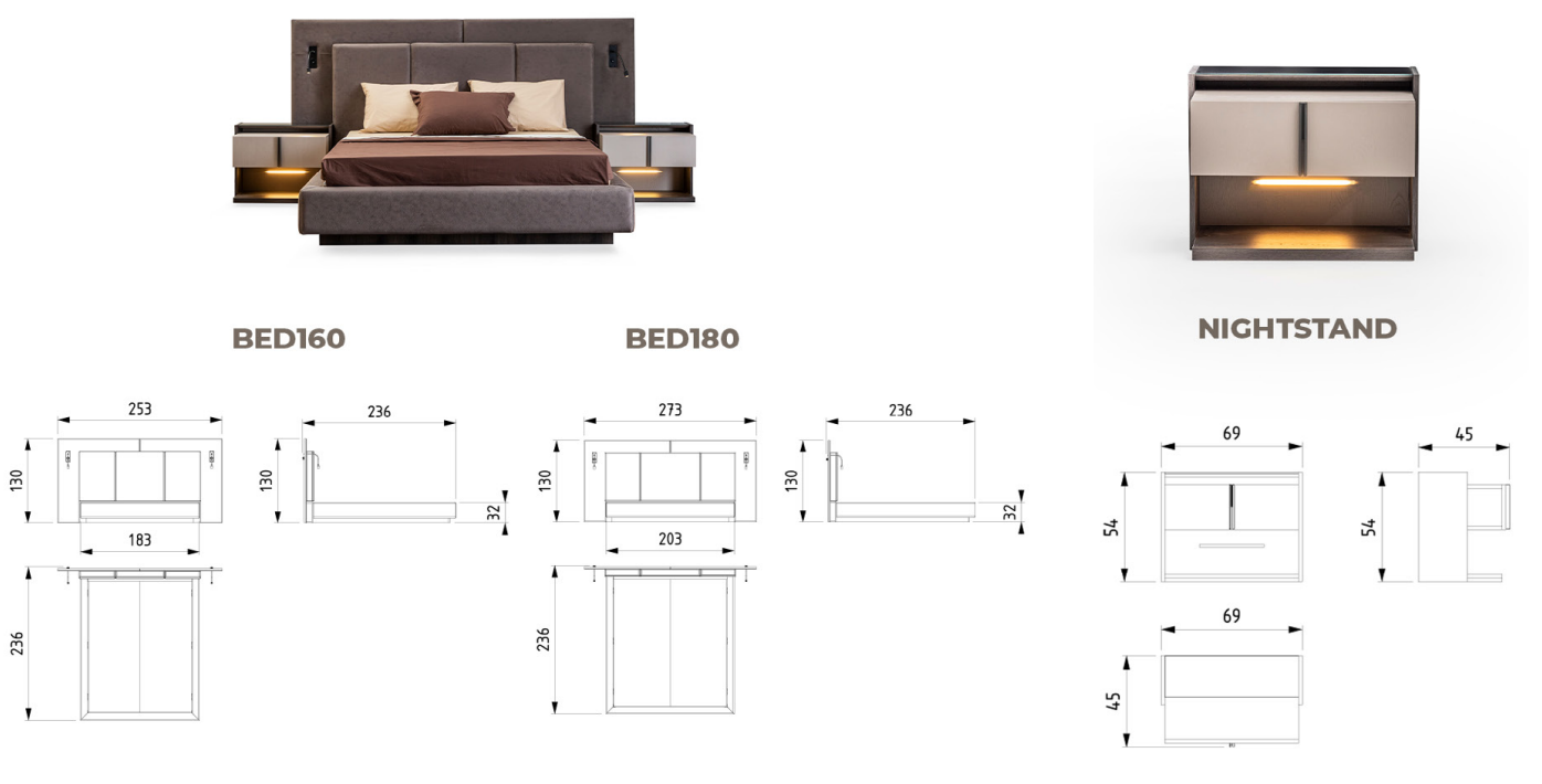 Ne bucuram sa iti prezentam exclusivul nostru set de mobilier de dormitor, definit prin eleganță, funcționalitate și tehnologie de vârf! Dacă căutați o combinație perfectă între lux și practicitate, nu căutați mai departe. Setul nostru premium ultra-modern este alegerea ideală pentru a transforma dormitorul dvs. într-un sanctuar de relaxare.