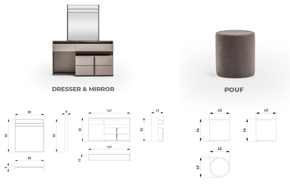 - Comodă cu Sertare: Echilibrând perfect funcționalitatea și estetica, comoda noastră cu sertare oferă spațiu generos pentru a vă păstra obiectele personale organizate și la îndemână. Designul său minimalist se integrează armonios în orice decor, oferind un plus de rafinament și stil.