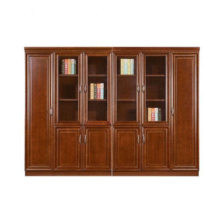 Set dulap biblioraft birou, culoare NUC, material HDF, lungime totala 240cm.