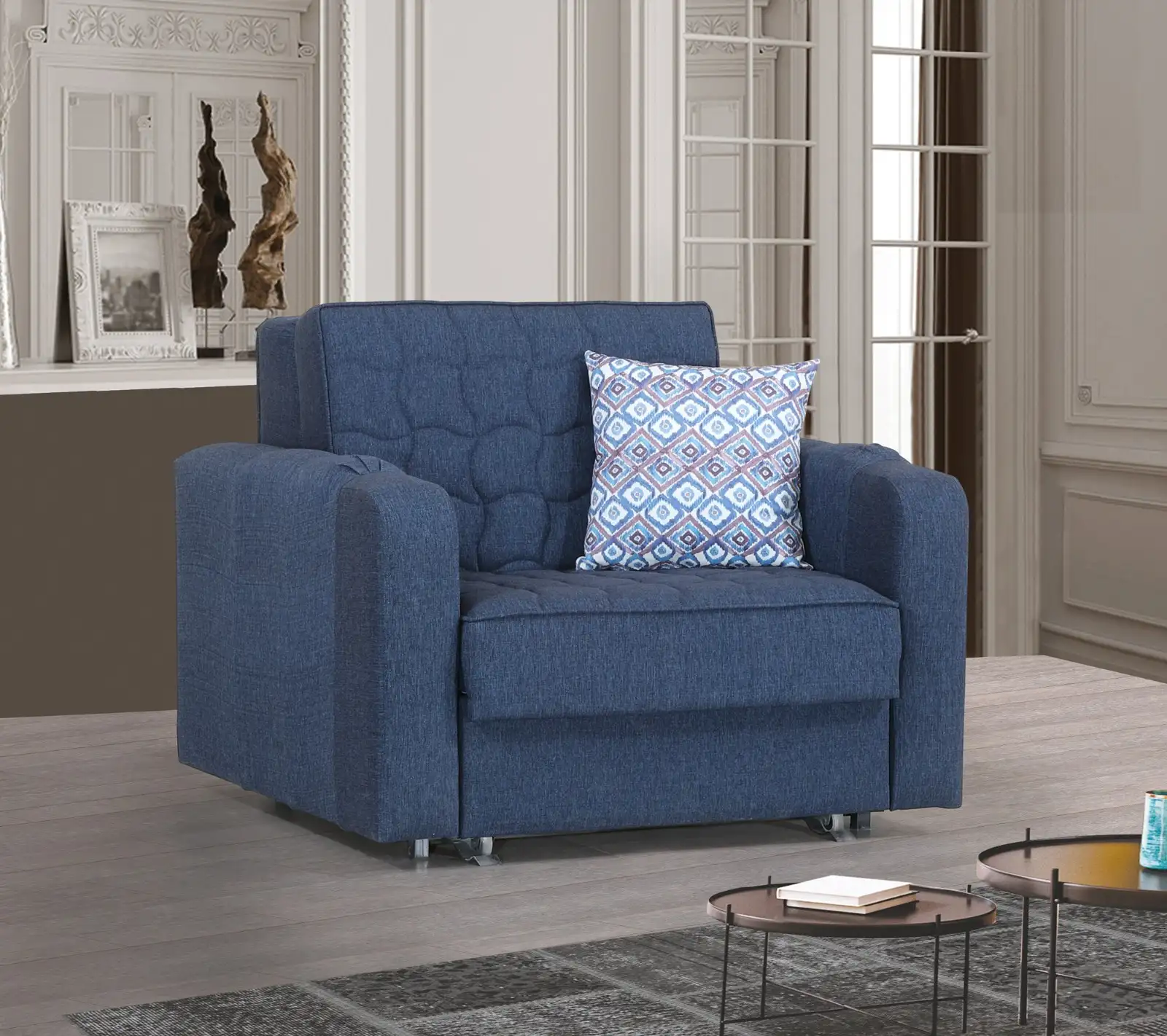 Fotoliul extensibil Gusto este soluția perfectă pentru cei care caută un mobilier versatil și elegant, indiferent dacă ai un apartament mic sau o casă spațioasă. Designul modern și compact al fotoliului Gusto îl face ideal pentru spațiile restrânse, iar atunci când este extins, acesta se transformă într-un pat confortabil, perfect pentru somn sau pentru momentele tale de relaxare. Spațiul generos de depozitare ascunde cu ușurință pături, perne sau alte obiecte, menținând camera ordonată.