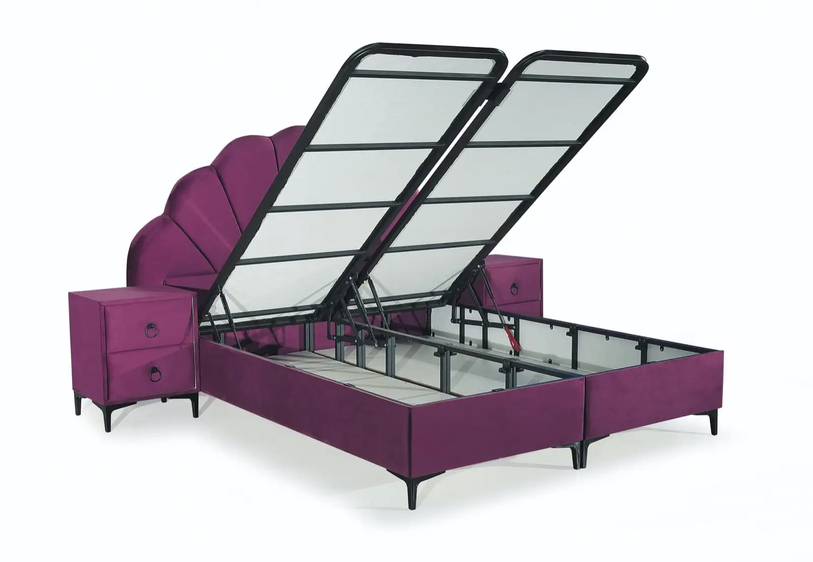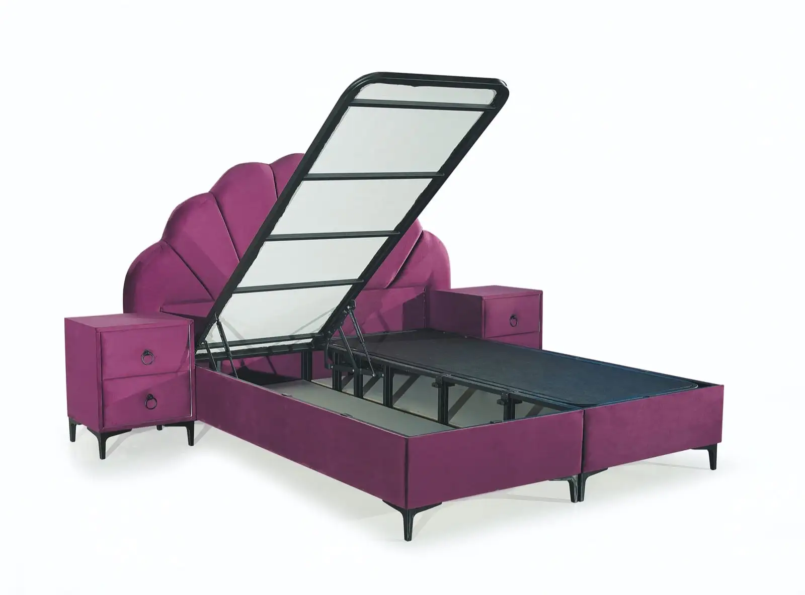 Tablia este foarte speciala, fiind capitonata cu stofa tip catifea moalela atingere, ce da o nota de eleganta si rafinament. Spatarul este decorat cu acelasi pattern care tine tesatura mai bine fixata, lucru ce ii ofera un atu in designul patului. In plus, la nivel senzorial, un astfel de pat confera intotdeauna o senzatie sporita de confort si intimitate si siguranta, acasa.Patul tapitat Perla ofera atat un design modern pe stil elegant cat si functionalitate prin lada pentru pastrarea lenjeriei si asternuturilor.