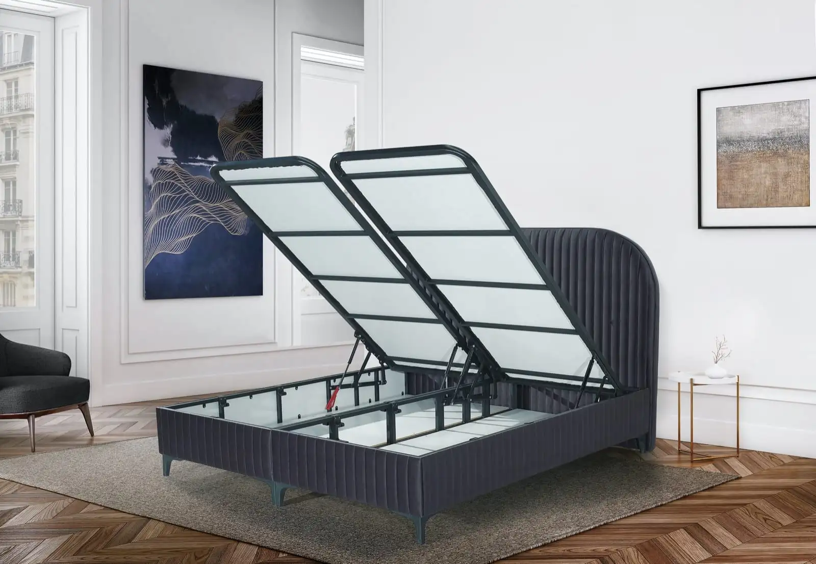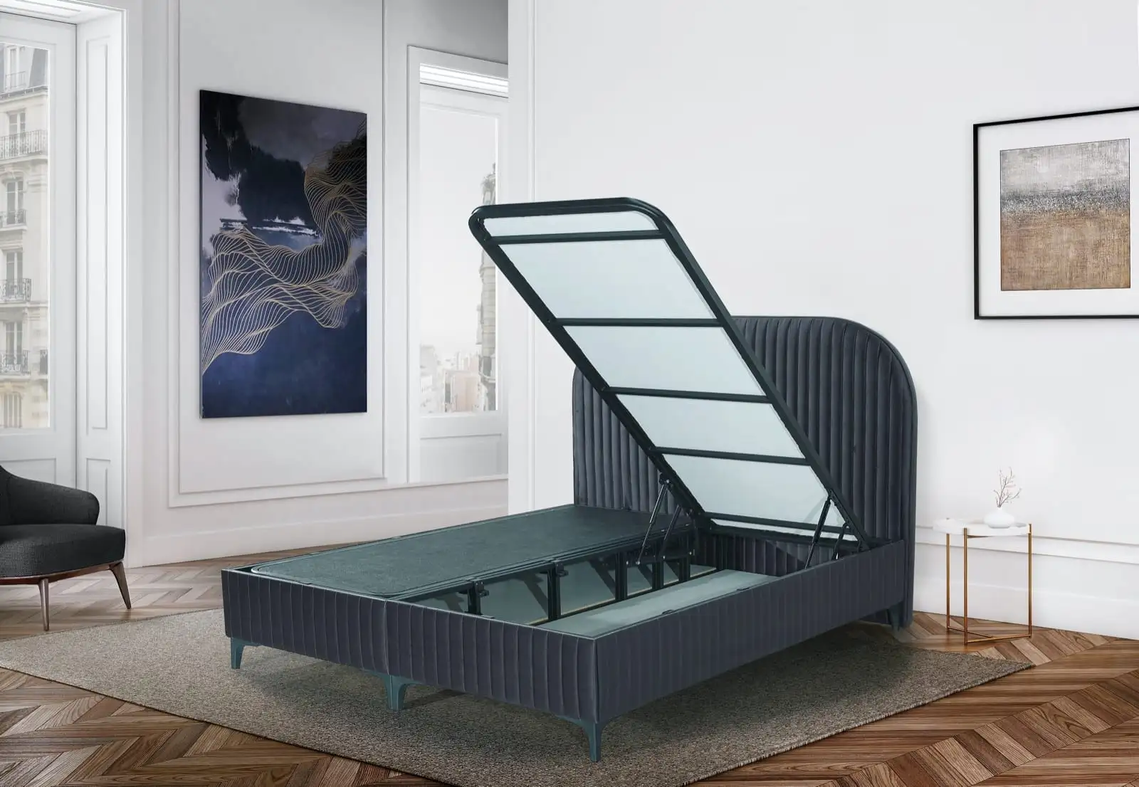 Modelul este prevazut cu o lada de depozitare, oferind spatiu suficient pentru aranjarea lenjeriei de pat, pilotelor sau pernelor. Astfel, economisesti mai mult loc cand iti aranjezi lenjeria, fara sa ocupi spatiu in dulap.