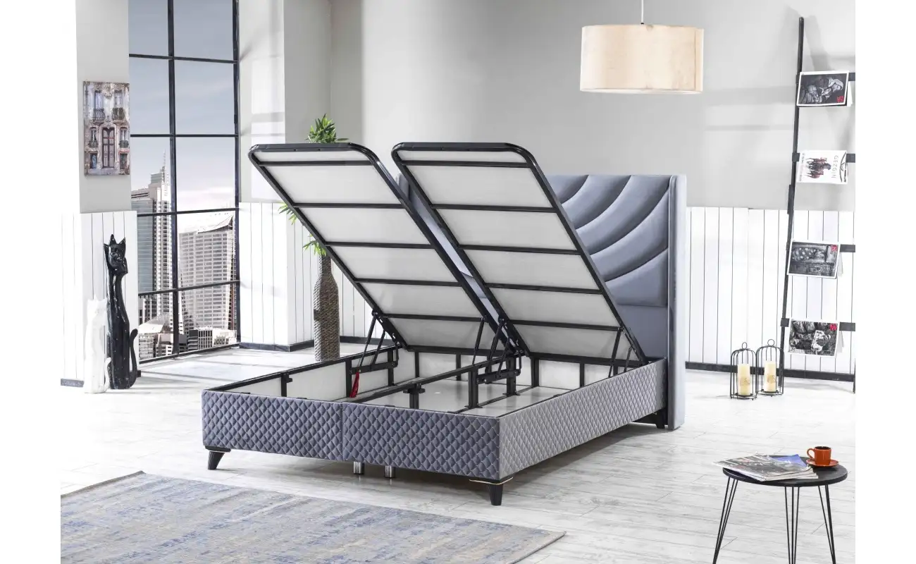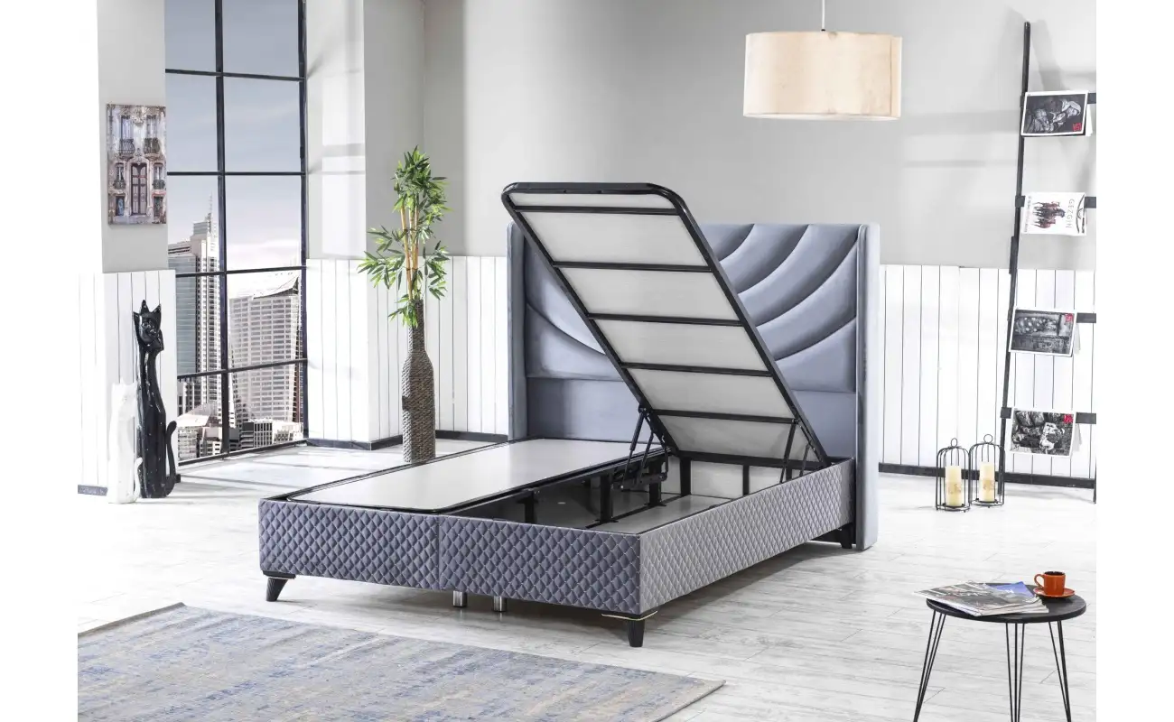 Pat tapițat matrimonial cu somieră rabatabilă și ladă Bora – Un pat elegant si confortabil care iti va influenta intotdeauna calitatea somnului.