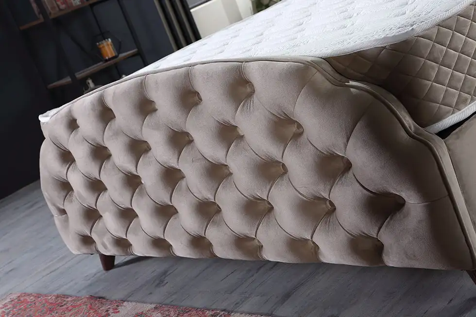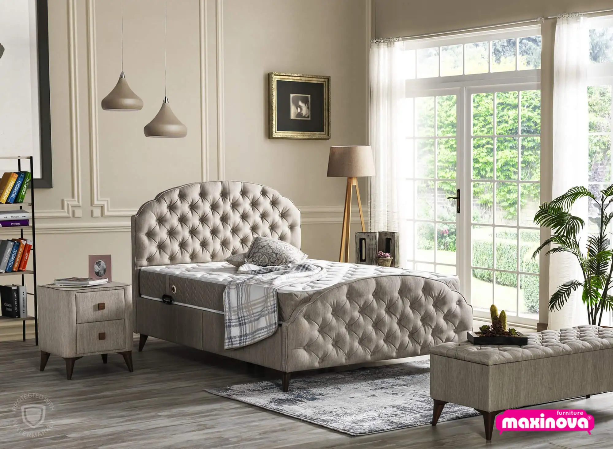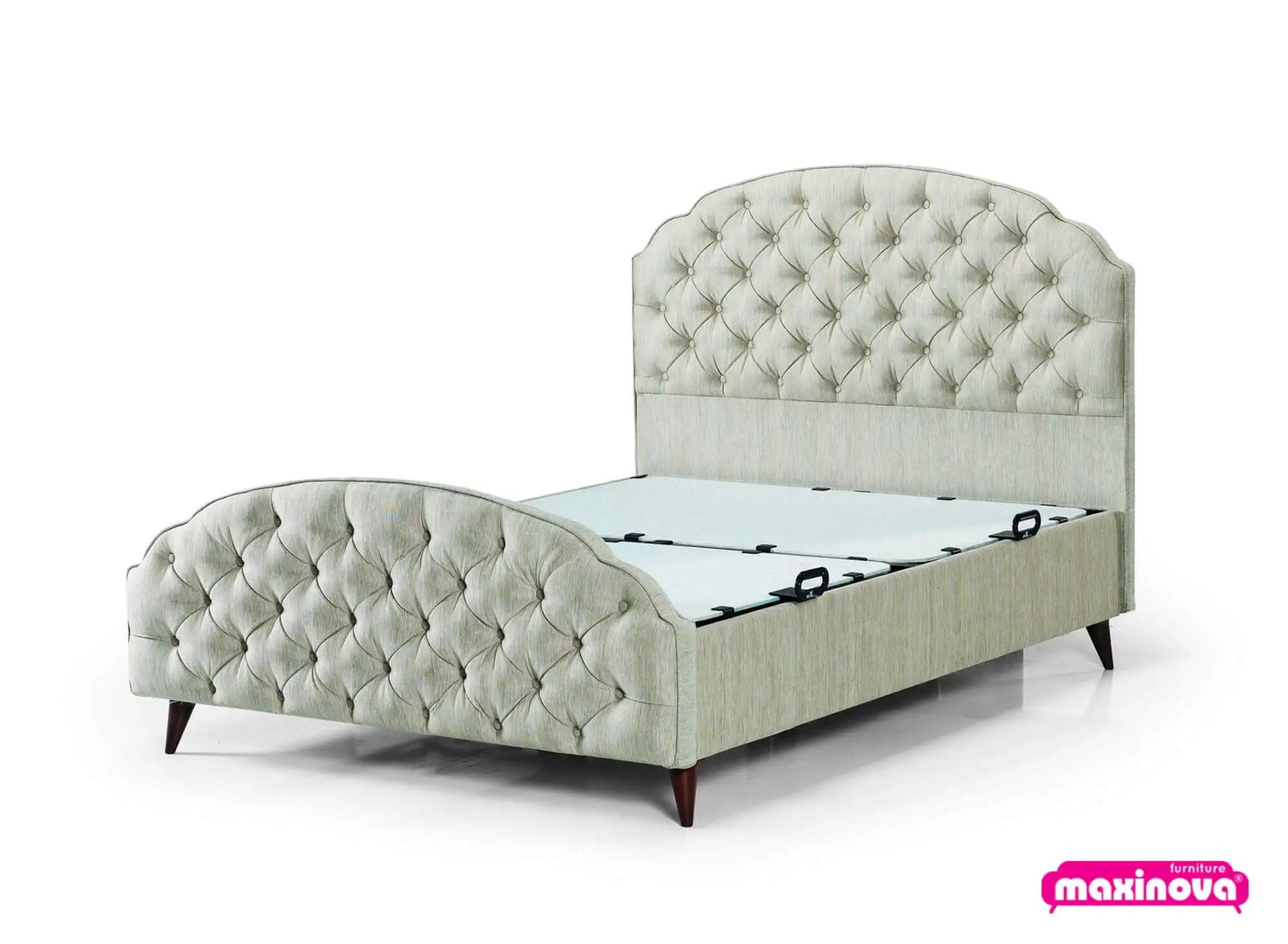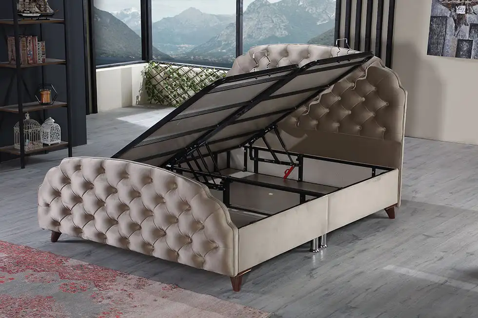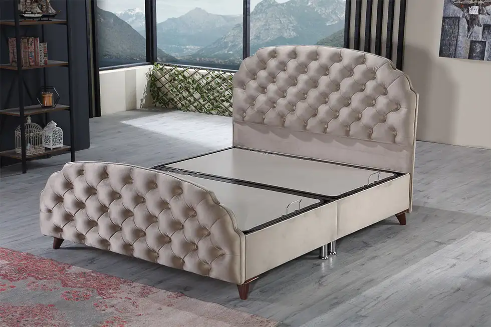 Pat tapițat matrimonial cu somieră și ladă Hiperia – accesoriul intim dintr-un dormitor de lux