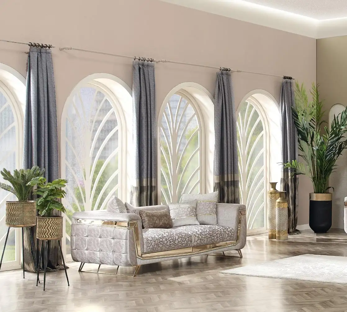 Setul de living Milano 3+1+1 extensibil îmbină cu măiestrie eleganța clasică și funcționalitatea modernă, devenind rapid locul ideal pentru relaxare al întregii familii! Canapeaua extensibilă, cu brațele sale impunătoare în stil Chester, strălucește prin ornamentul cromat tip oglindă ce îmbrățișează spătarul, oferind un accent subtil de lux. Detaliile argintii se îmbină armonios cu nuanța elegantă a tapițeriei, conferind setului o strălucire aparte, perfectă pentru a crea un ambient sofisticat. Fotoliile semirotunde, cu design atrăgător, completează ansamblul și te invită la momente de relaxare profundă.