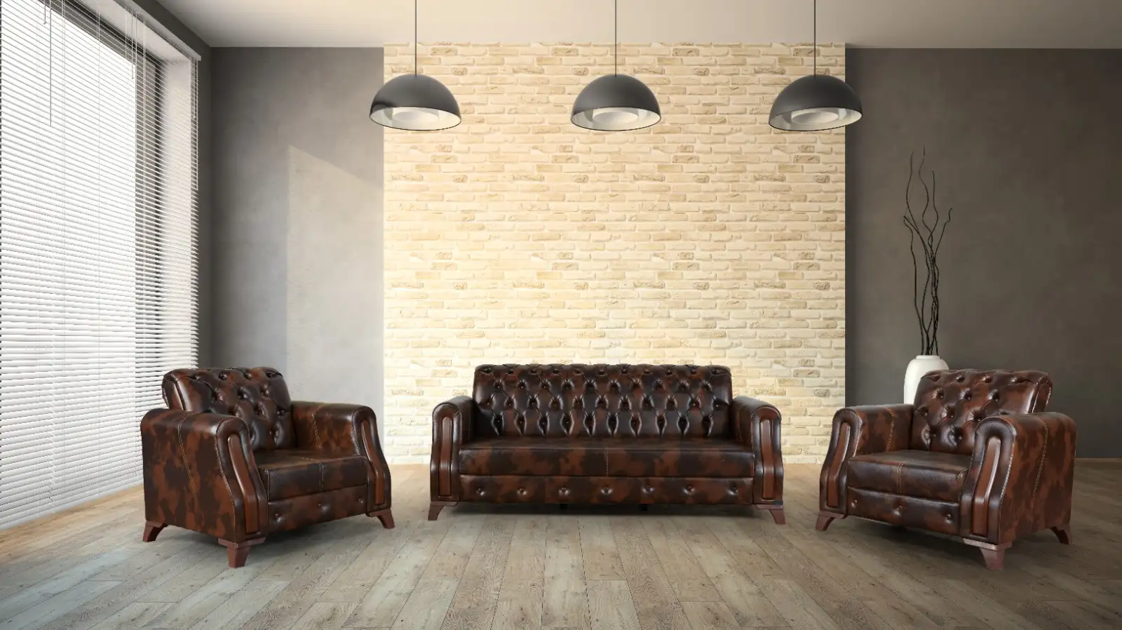 Setul de canapea și fotolii Diplomat Chesterfield – Un sinonim pentru eternitate, datorită rafinamentului canapelelor și a modelului ce dăinuie în timp.