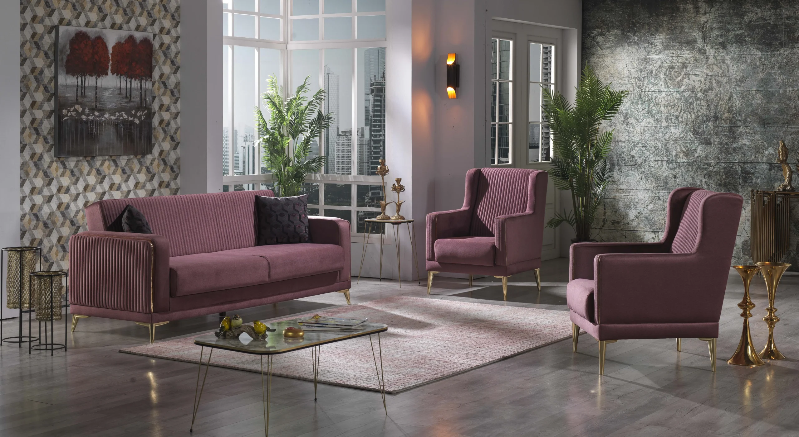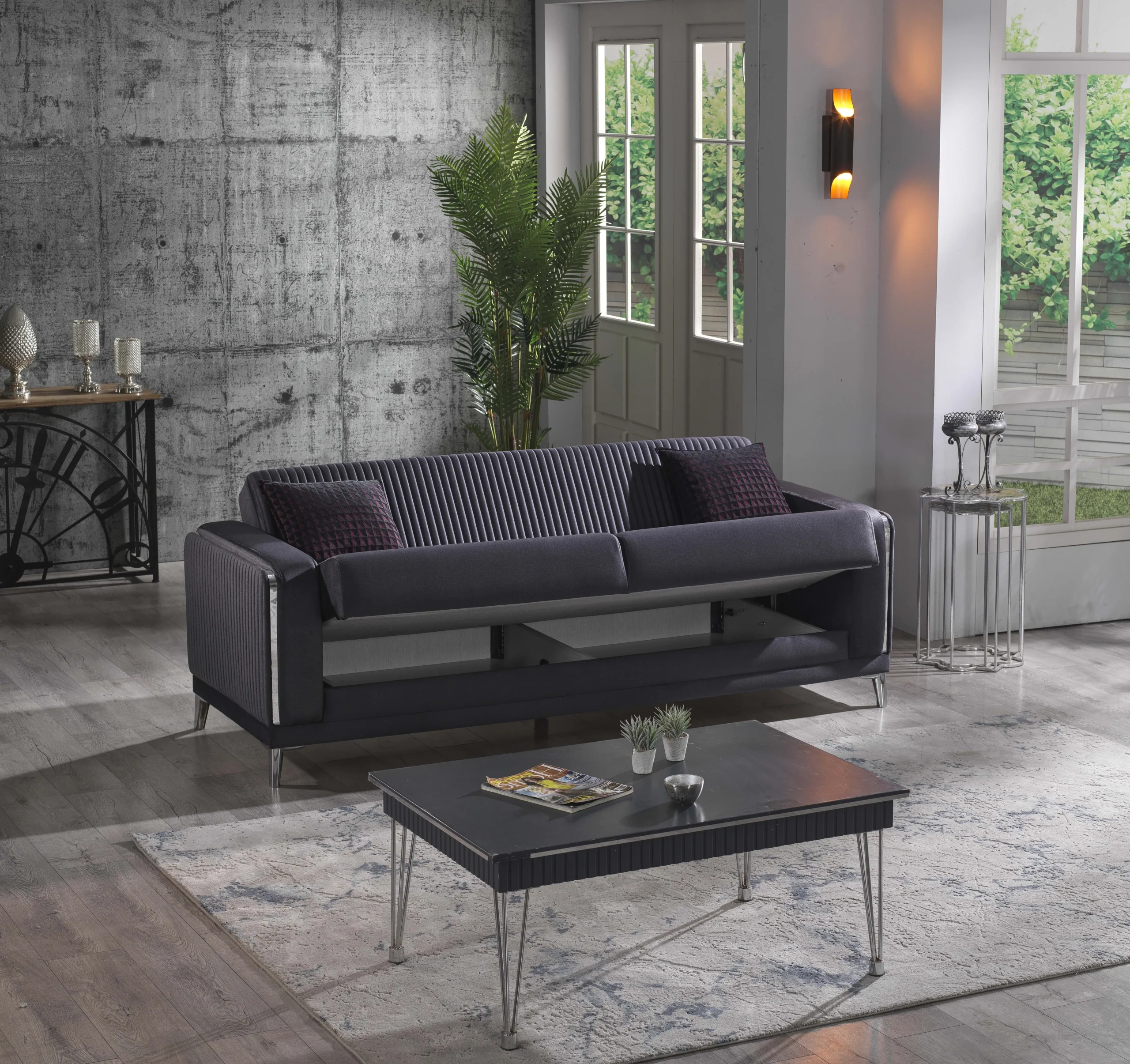 Poate fi si locul in care lucrezi, creezi sau iti incepi ziua cu o cafea. Pentru asta, un set de canapea extensibila cu 2 fotolii este suficient. Cu un design extravagant setul iti va oferi confortul si spatiul de care ai nevoie.