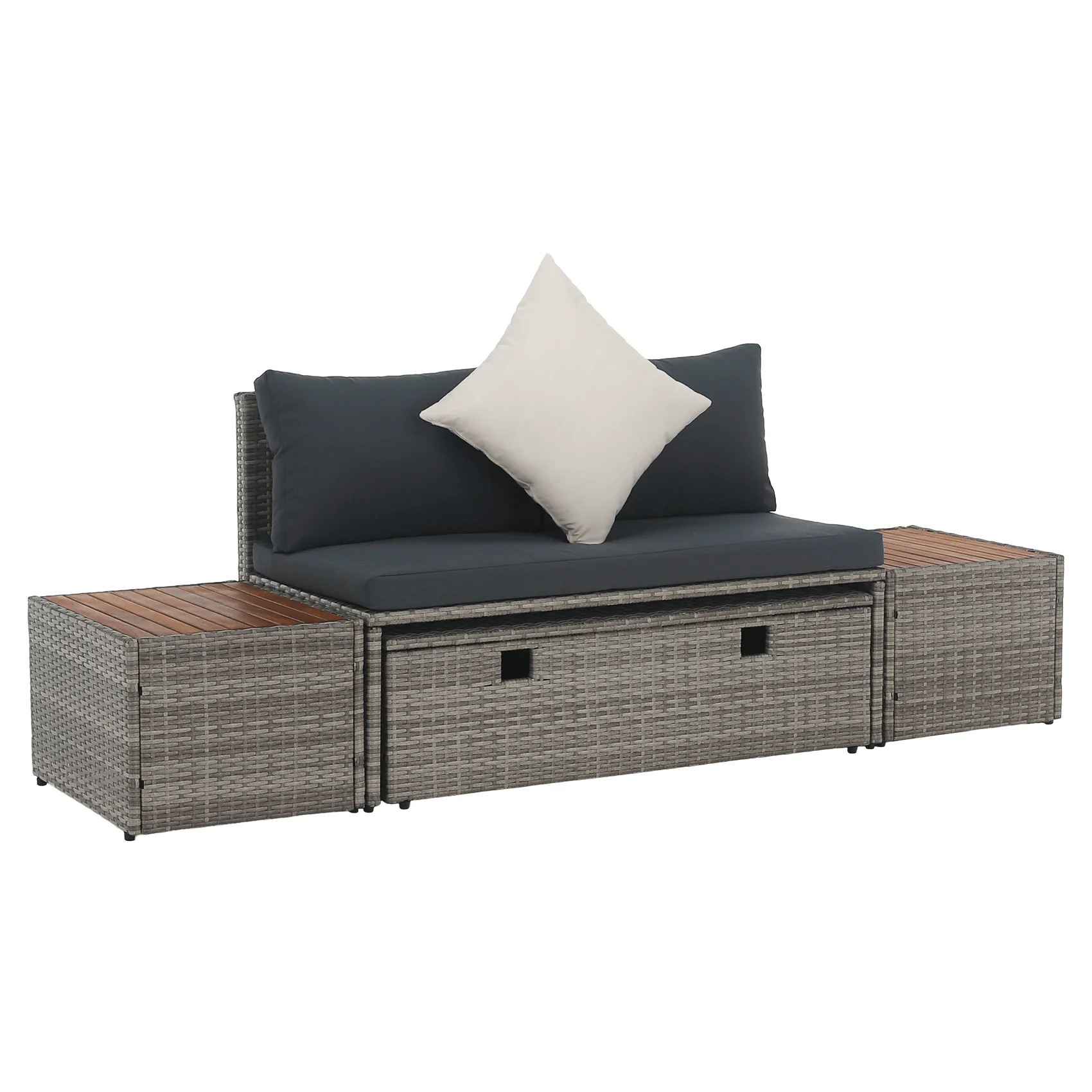 Setul de grădină DEBRA este un set din 4 piese modern şi practic, conceput pentru confort maxim şi funcţionalitate în grădină sau terasă. Acesta include o canapea, o bancă cu spaţiu de depozitare şi două măsuţe auxiliare. Construcţia este realizată din ratan tehnic şi oţel. Platoul măsuţelor este realizat din lemn masiv de salcâm. Combinaţia de gri şi natural este potrivită pentru diferite tipuri de exterioare şi este uşor de combinat cu celălalt scaune de grădină. Eleganţa şi confortul sunt completate de pernele din material textil în culoare gri şi crem. Husele de pernă sunt detaşabile, impermeabile şi se pot spăla la temperatura de 30°C. O caracteristică interesantă este compartimentul de depozitare din bancă, care vă permite să depozitaţi perne sau alte articole, ajutând la menţinerea ordinii. Capacul băncii este echipat cu un piston hidraulic, care permite deschiderea sa uşoară şi sigură, fără riscul închiderii bruşte. În plus, banca poate fi complet împinsă sub canapea, ceea ce economiseşte spaţiul. DEBRA vă oferă mult spaţiu pentru şezut, dar şi pentru depozitarea lucrurilor mici în timp ce vă relaxaţi în grădină.