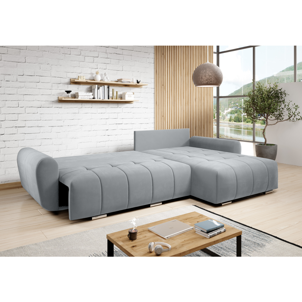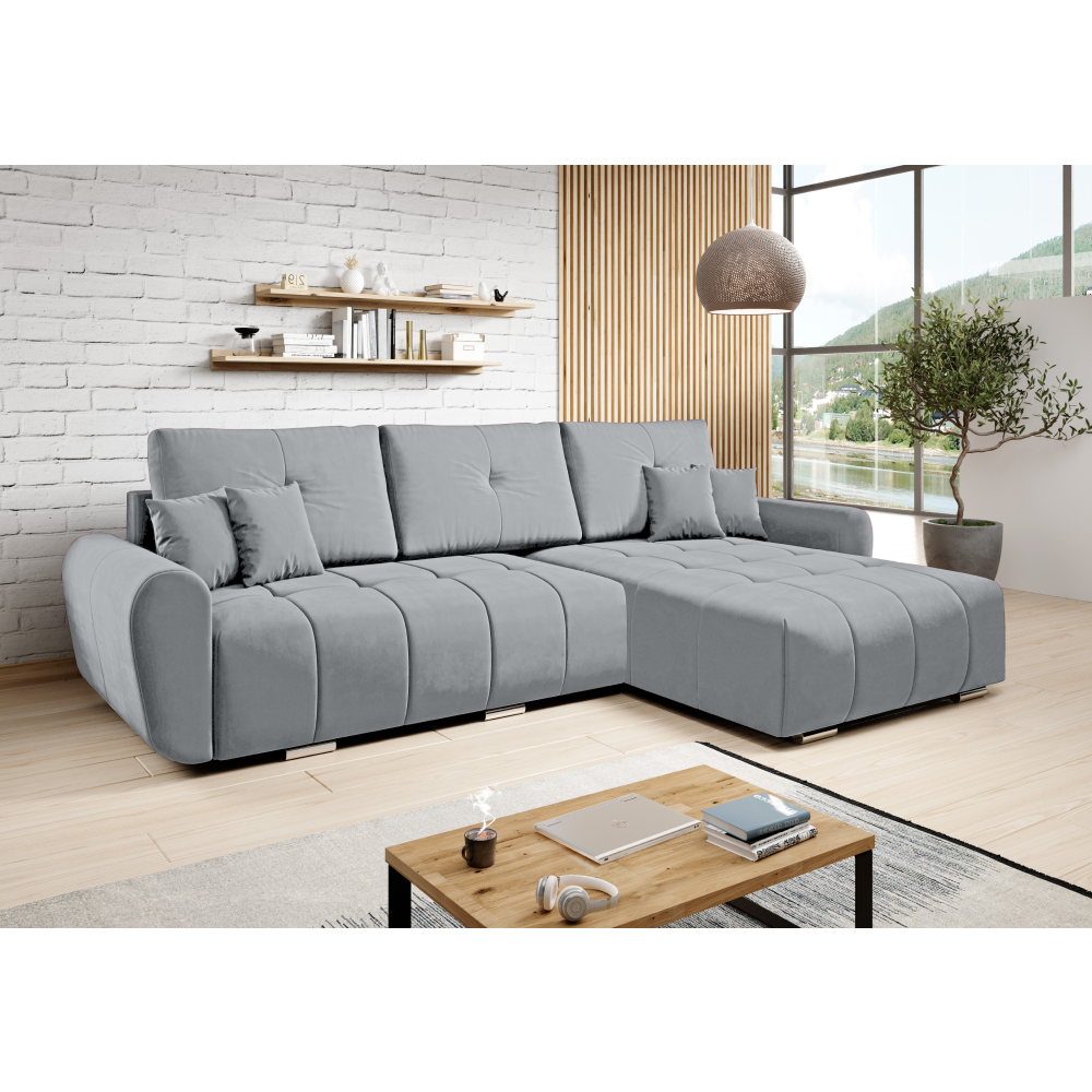 Creaţi spaţiul perfect pentru relaxare cu modernul set de canapele LONGA ROH, care combină designul elegant şi confortul maxim. Complet tapiţat cu ţesătură Monolith în culoare gri/burgundy, este potrivit nu numai pentru colţ, ci şi pentru centrul încăperii, unde aspectul său elegant se va evidenţia perfect. Finisajul impermeabil simplifică întreţinerea, deoarece lichidele nu se infiltrează. Oferă funcţia de extindere cu posibilitatea de a se extinde într-un pat de dimensiuni normale. LONGA ROH este universală, astfel încât puteţi alege versiunea pe stângă sau pe dreaptă pentru a se potrivi nevoilor dumneavoastră. Miezul constă dintr-o combinaţie de arc falista şi spumă PUR. Pernele decorative şi de suport spate sunt de asemenea incluse pentru a spori confortul părţii de şezut. Canapeaua are un spaţiu practic de depozitare pentru depozitarea lenjeriei de pat şi este construită pe picioare elegante din plastic argintiu, care îi conferă un aspect modern.