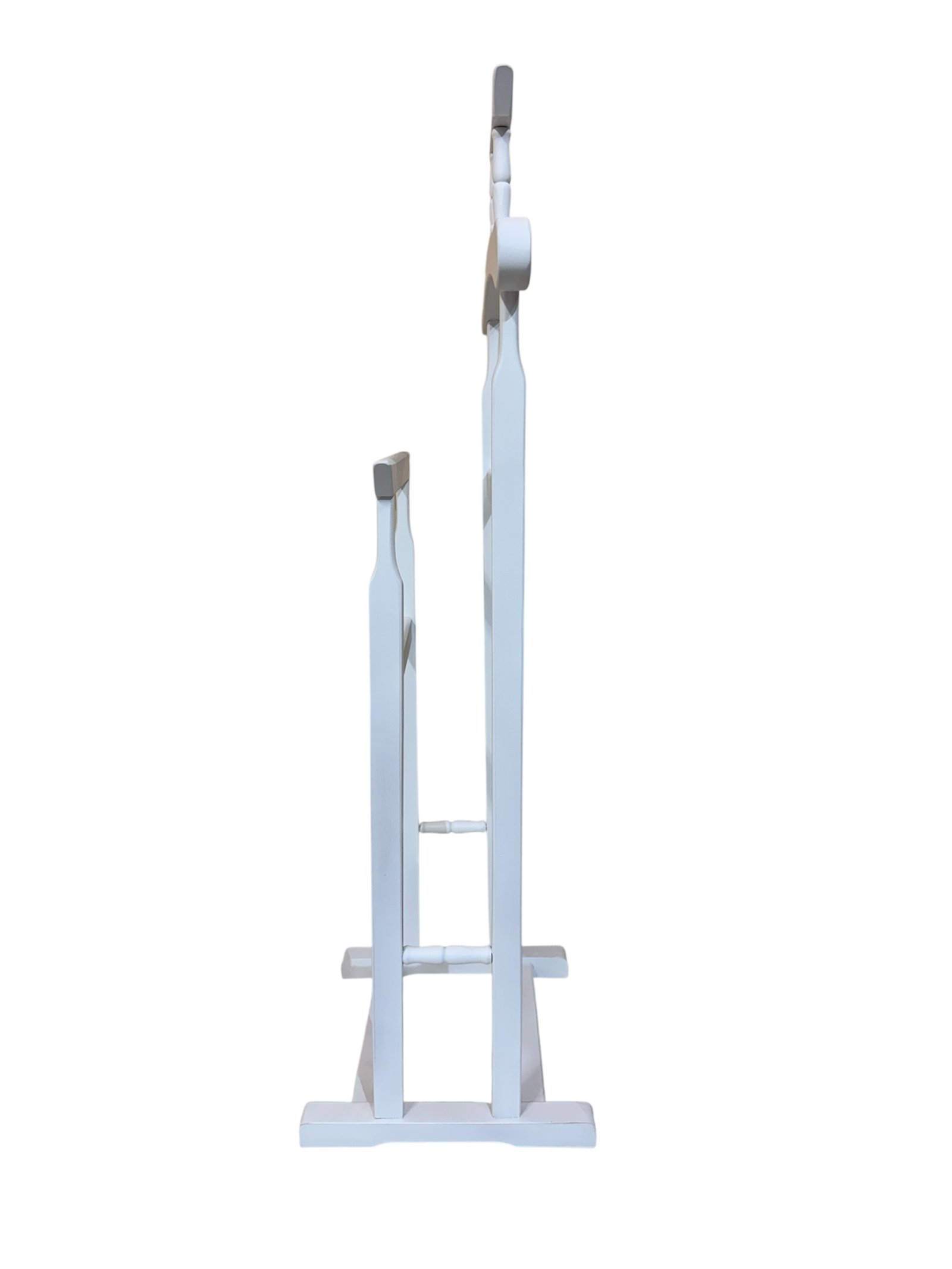 Structura verticală este concepută pentru organizarea eficientă a hainelor, permițând așezarea sacourilor, cămășilor, pantalonilor sau accesoriilor fără a le șifona. Bara superioară și elementele de susținere oferă stabilitate, iar baza solidă asigură o utilizare sigură zilnică.