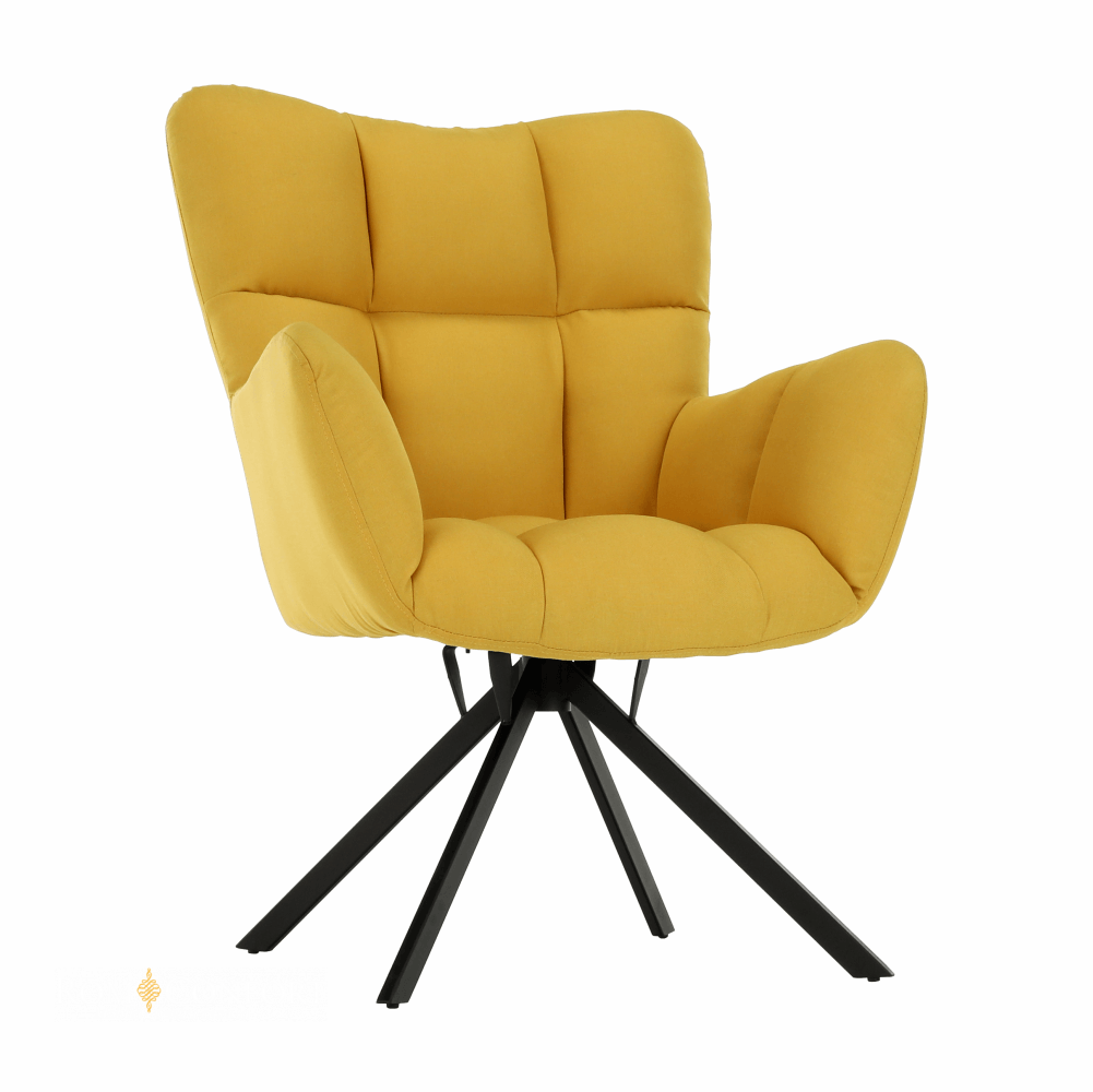 O piesă de design care arată ca un fotoliu, dar care va deveni foarte repede răsfăţul tău preferat. Fotoliul delicat şi drăguţ va deveni cel mai bun prieten al tău. Nu te va dezamăgi niciodată, va fi întotdeauna aici pentru tine să te îmbrăţişeze, să ofere căldură şi tandreţe, să asigure confort maxim. Visezi la casa ideală? Lăsaţi fotoliul modern KOMODO să iasă în evidenţă în ea. Fotoliul este rotativ. Poate sta într-un singur loc, dar din el veţi avea vedere asupra întregii camere. Este tapiţat cu material textil în design modern şi trendy în nuanţa galben. Picioarele negre din metal solid asigură stabilitatea. Confort şi relaxare, doar la asta vă puteţi aştepta de la un fotoliu care se mândreşte cu tapiţerie pufoasă şi moale. Experimentează odihna adevărată, curată şi de nimic tulburată!
